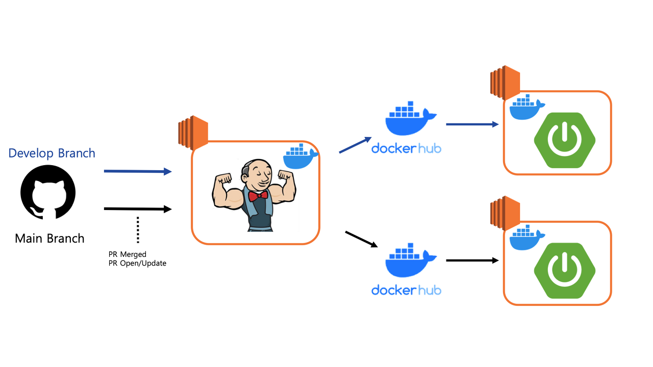 실제 서비스 운영 해본 다는 것은 단지 개발을 해서 커밋을 하고 PR을 날리는 것이 아니고 상상 이상으로 떨리는 것이었다. 당장 내 PR로 인해서 수 백명의 유저들이 즉각적인 불편함을 느낀다는 것이 부담스러웠으며 CICD 파이프라인이 잘못되는 것은 아닐지 걱정이 많았다. 걱정이 많을 수록 고민은 많이 했고 고민은 나에게 성장을 가져다줬다. 걱정은 Dev(개발), Prod(배포) 서버를 분리하게 하였고 DB 또한 분리하였으며 브랜치별 CICD 전략 구성하여 main 브랜치에 PR이 발생할 경우, prod서버에 배포가 되고 develop 브랜치의 경우, dev서버에 배포가 진행되도록 하였다.