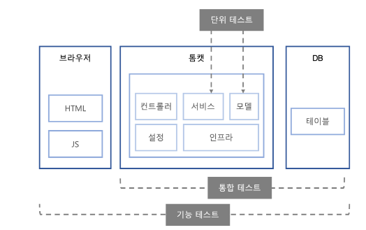 하나의 기능이 올바르게 동작하려면 컨트롤러, 서비스, 모델과 같은 자바 코드와 프레임워크, 설정에 문제가 없어야 할 뿐 아니라 브라우저에서 실행되는 자바스크립트 코드, HTML과 CSS 등이 정상 동작해야 한다. 또한, DB의 테이블도 올바르게 생성해야한다.