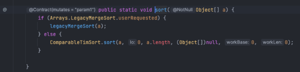 TimSort 방식으로 정렬을 하는데 TimSort를 정렬에 Arrays.sort()의 메서드를 사용한다.
