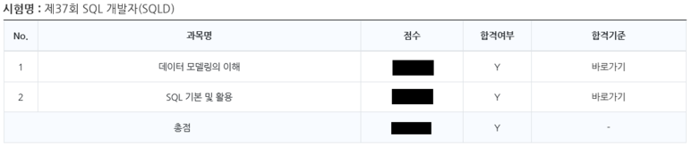 37회 2020년 5월 30일에 진행된 SQLD 자격증 시험에 합격했습니다.