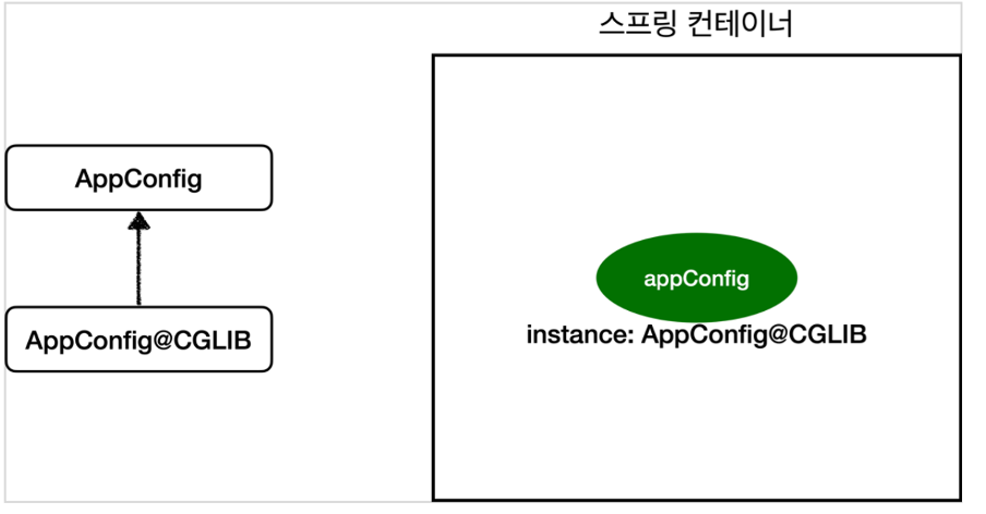 Ps. AppConfig@CgLIB는 AppConfig의 자식 타입으므로, AppConfig타입으로 조회할 수 있다.