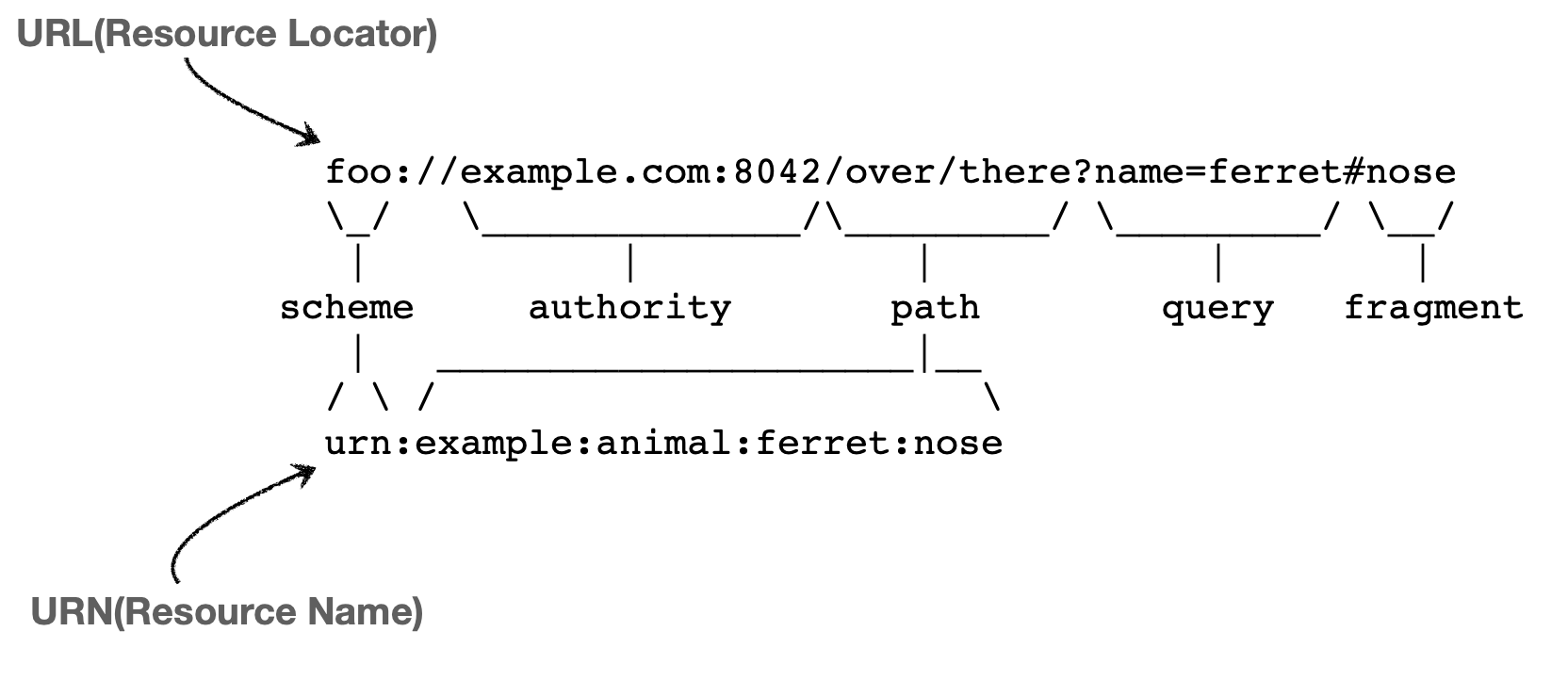 URI는 로케이터(locator), 이름(name) 또는 둘다 추가로 분류 될 수 있다.