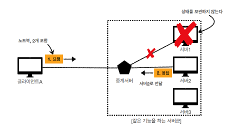 중간에 서버가 장애가 나면? 클라이언트의 상태 정보가 사라진다.