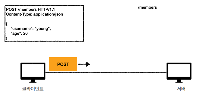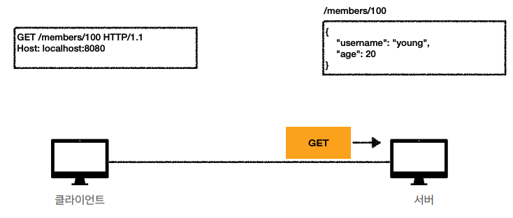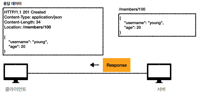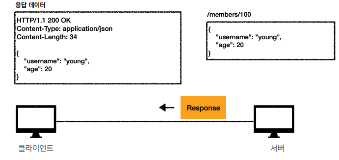 서버는 요청 데이터를 처리하고 메시지 바디를 통해 들어온 테이터를 처리하는 모든 기능을 수행한다.