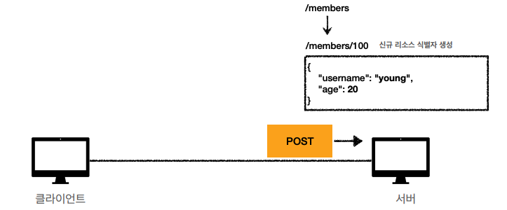 이 리소스 URI에 POST 요청이 오면 요청 데이터를 어떻게 처리할지 리소스마다 따로 정해야 함 -> 정해진 것이 없음