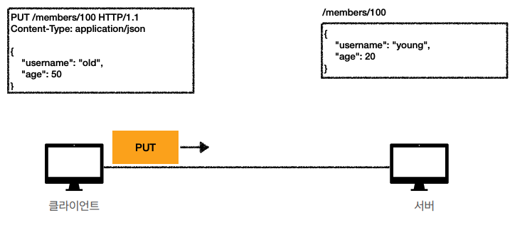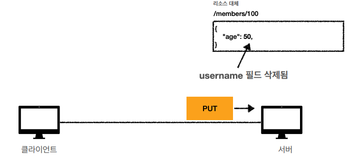 PUT: 리소스를 대체, 해당 리소스가 없으면 생성한다.