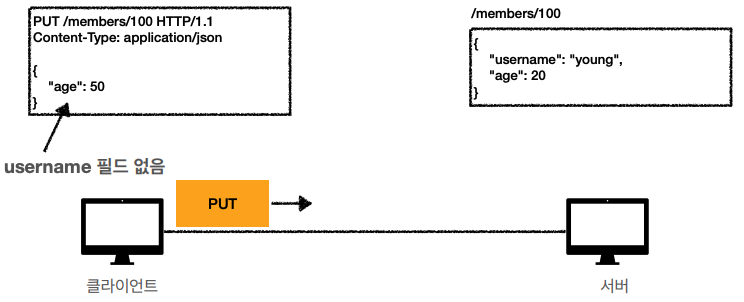 - PUT: 결과를 대체한다. 따라서 같은 요청을 여러번 해도 최종 결과는 같다.