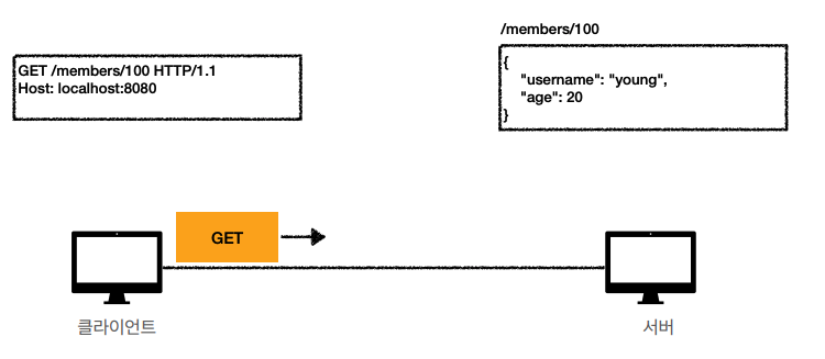 서버는 요청 데이터를 처리하고 메시지 바디를 통해 들어온 테이터를 처리하는 모든 기능을 수행한다.