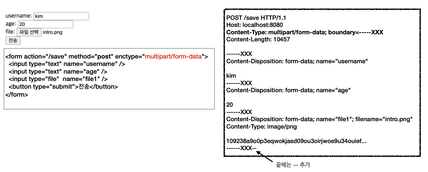 - 다른 종류의 여러 파일과 폼의 내용을 함께 전송이 가능하다.